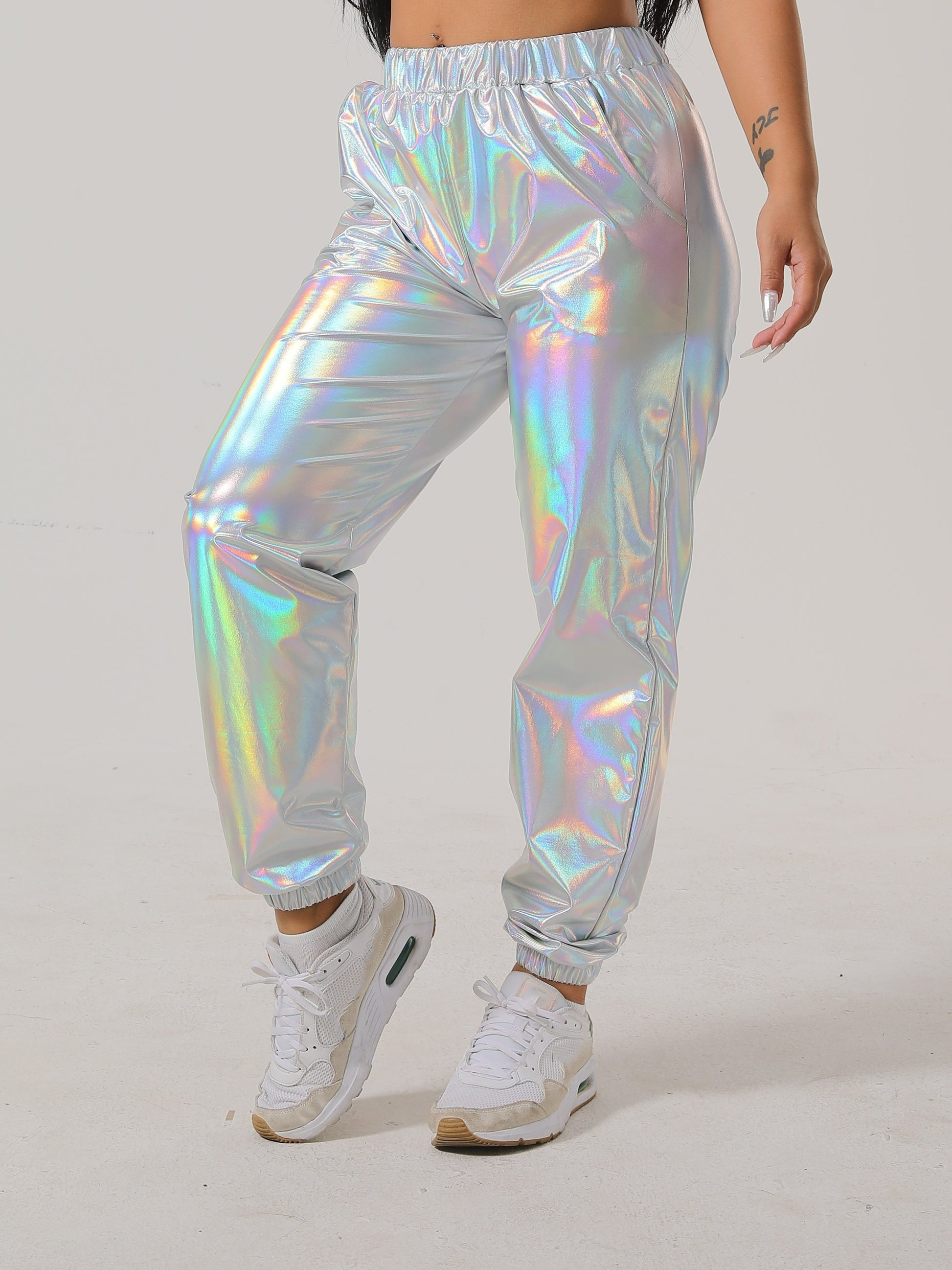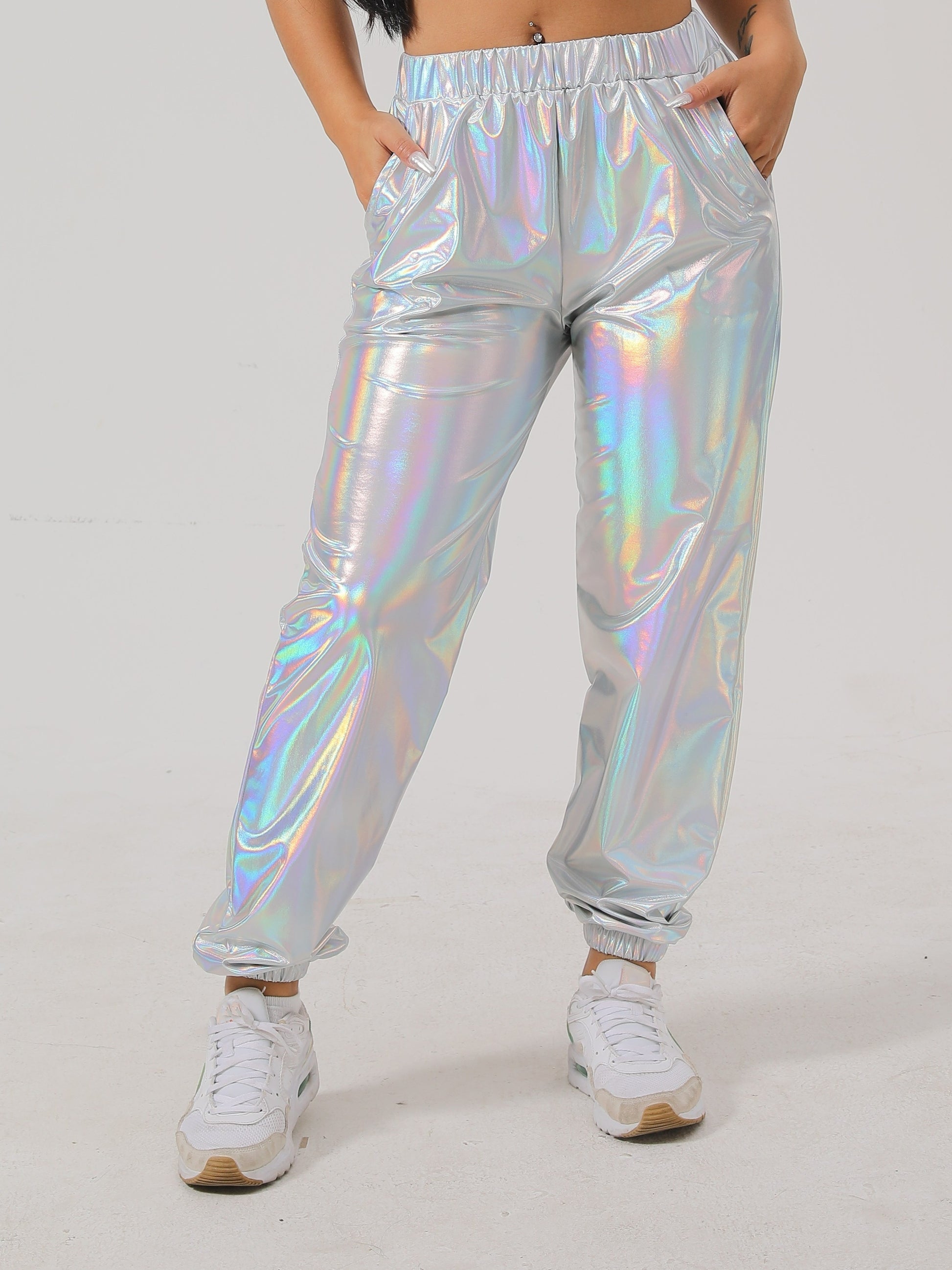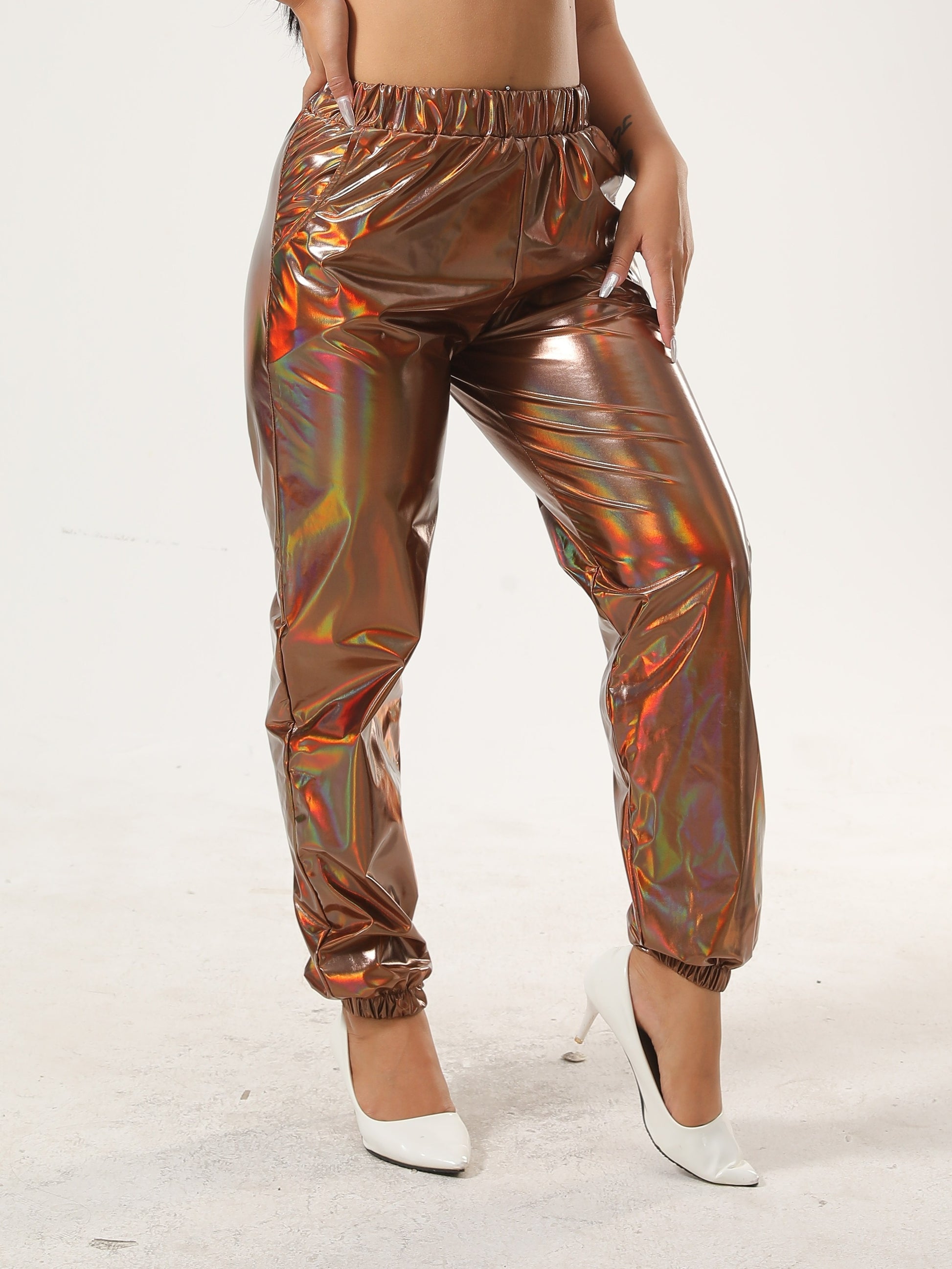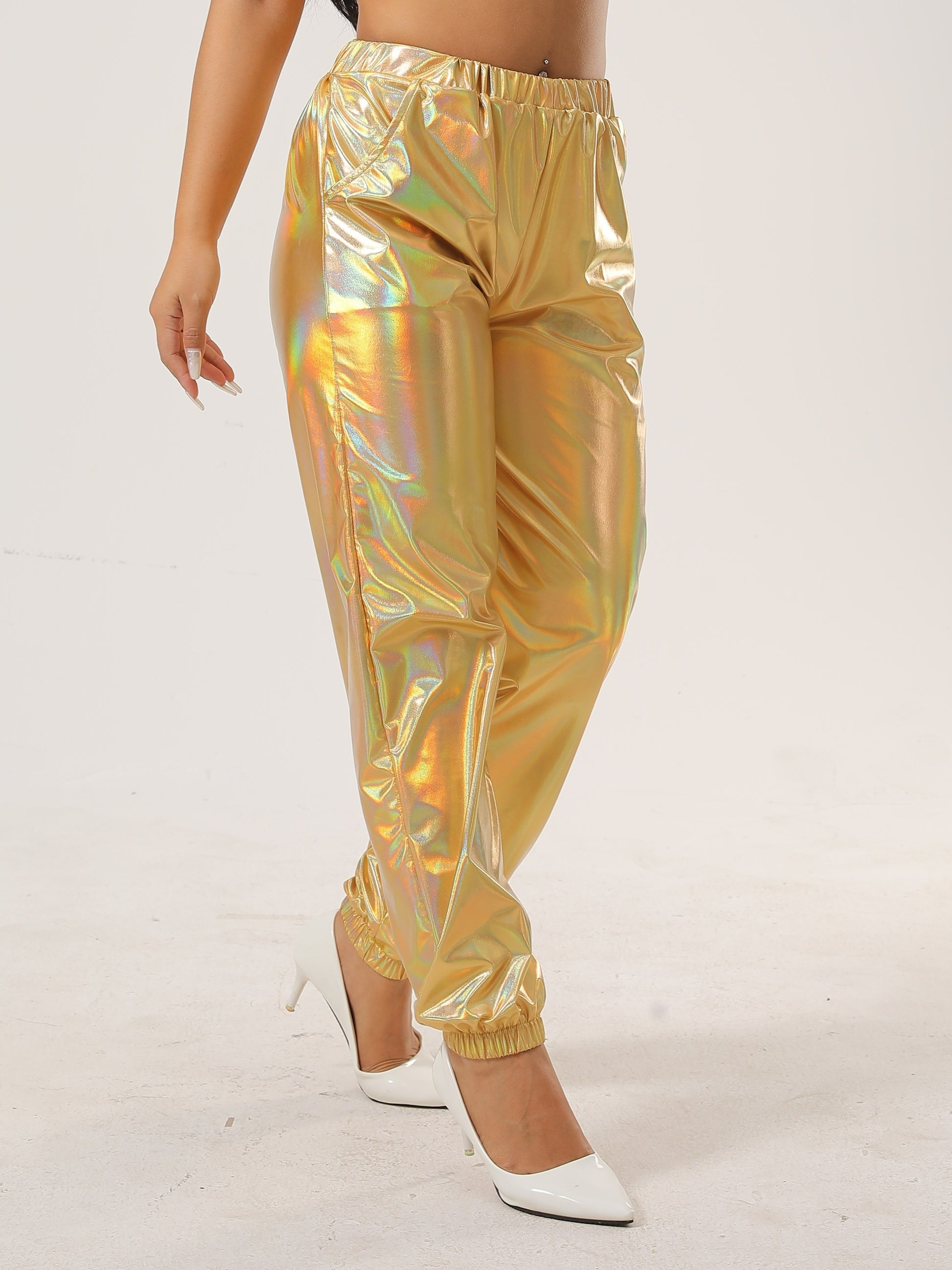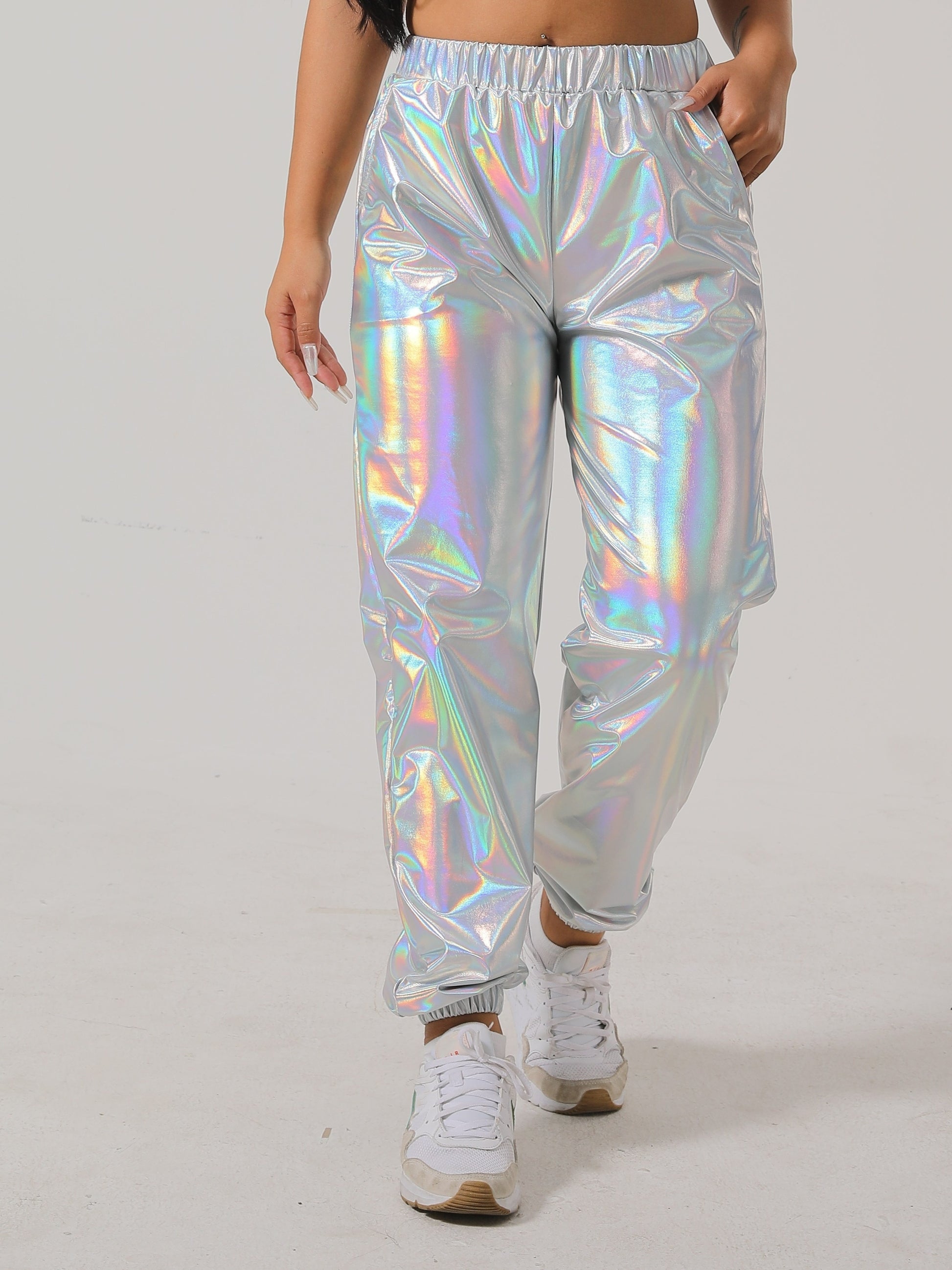 Women's Vibrant Purple Casual Tapered Leggings with Elastic Waistband & Side Pockets - Medium-Stretch All-Season Comfort for Lounge, Workouts & Casual Attire, Leggings, Lounge Wear, Fashionable Jogger Style, Medium Elasticity