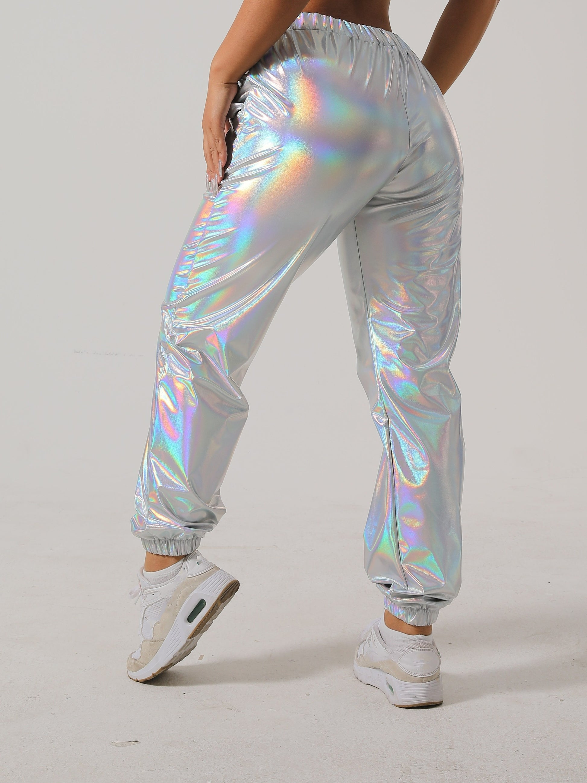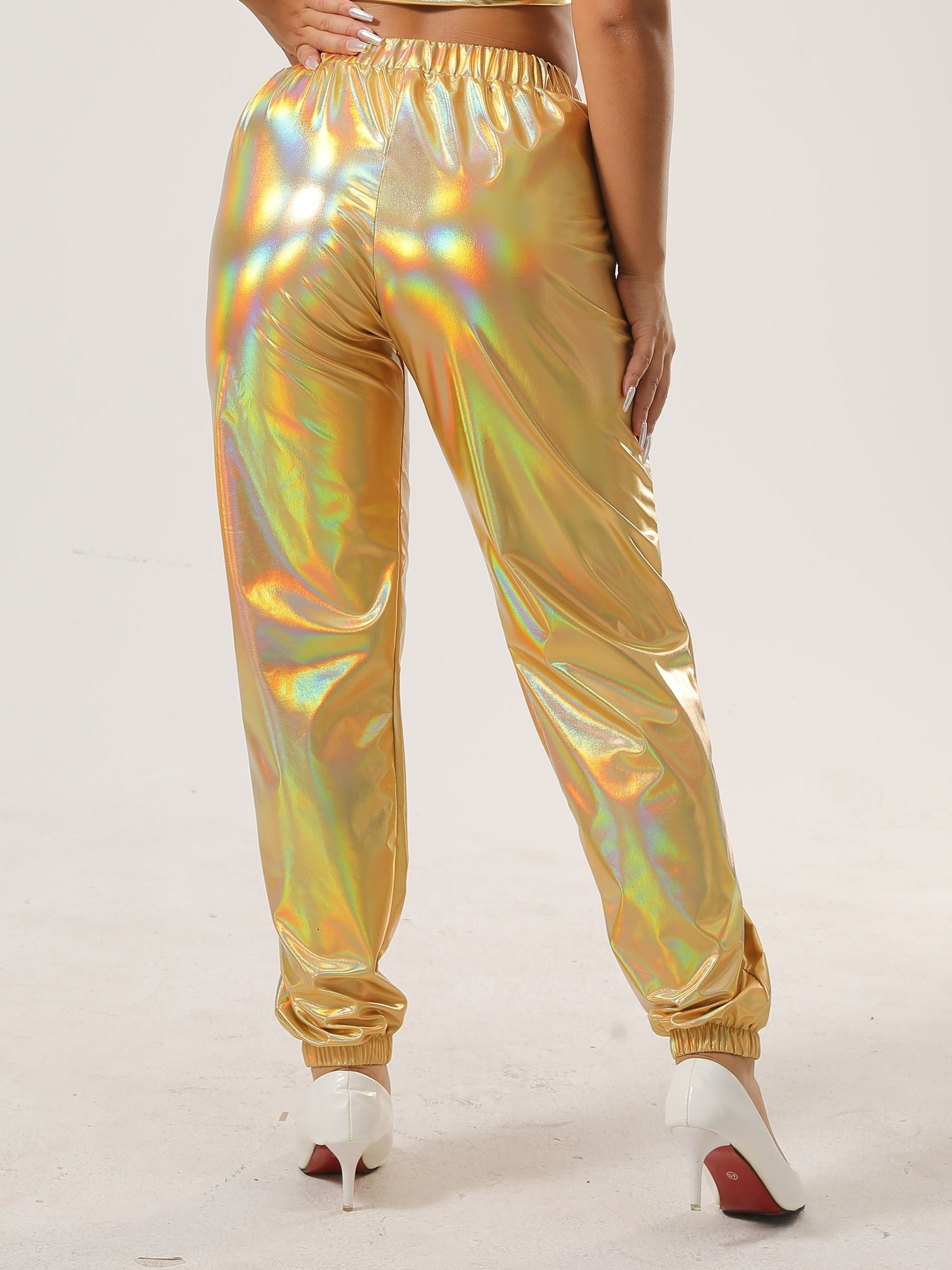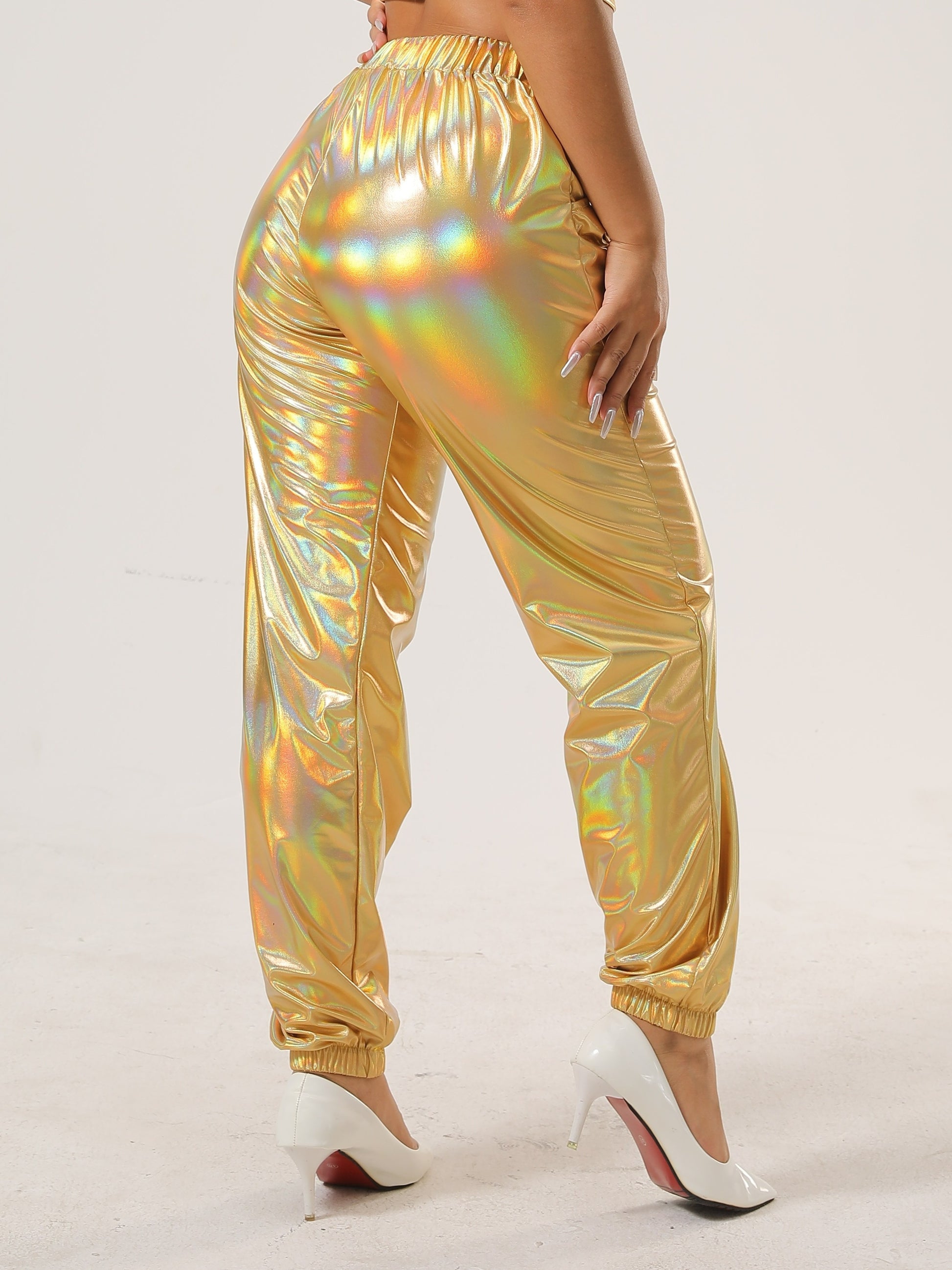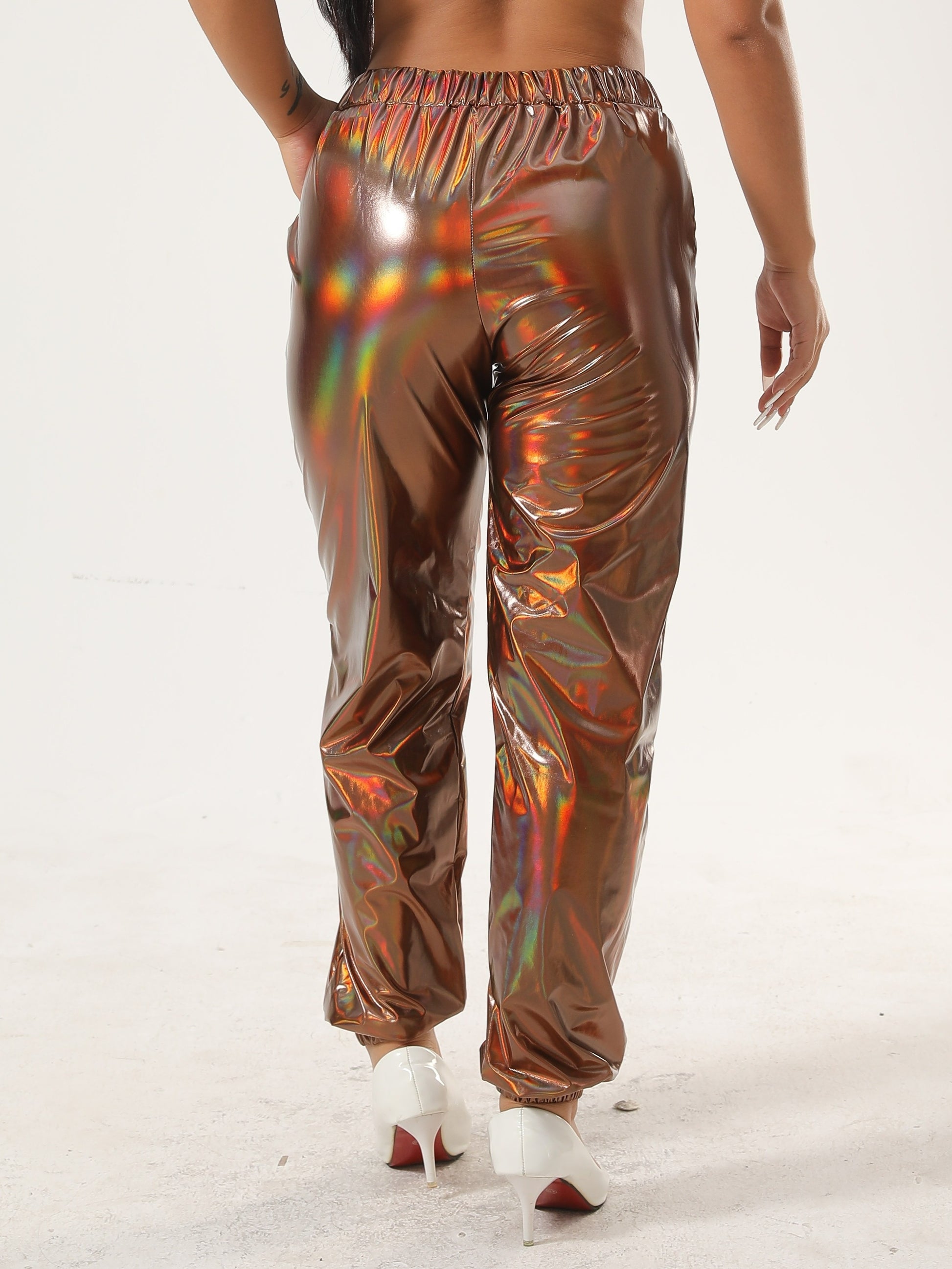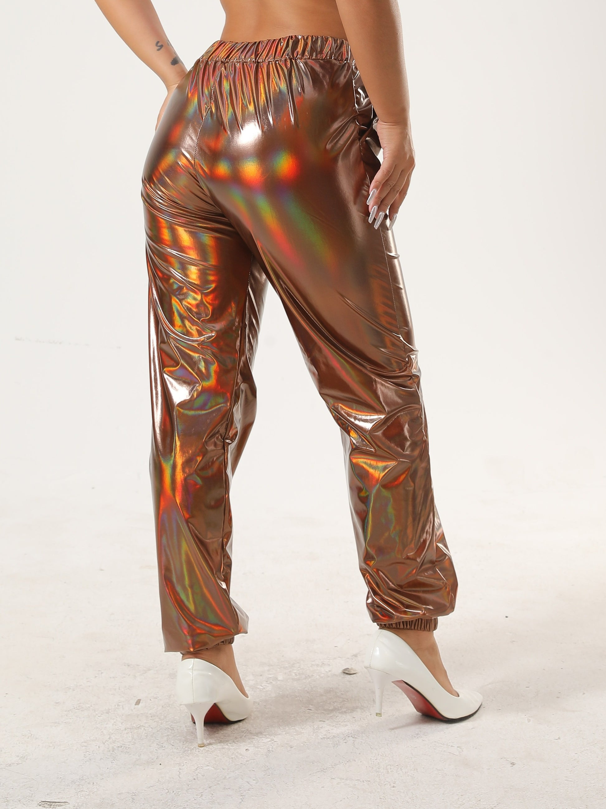 Women's Vibrant Purple Casual Tapered Leggings with Elastic Waistband & Side Pockets - Medium-Stretch All-Season Comfort for Lounge, Workouts & Casual Attire, Leggings, Lounge Wear, Fashionable Jogger Style, Medium Elasticity