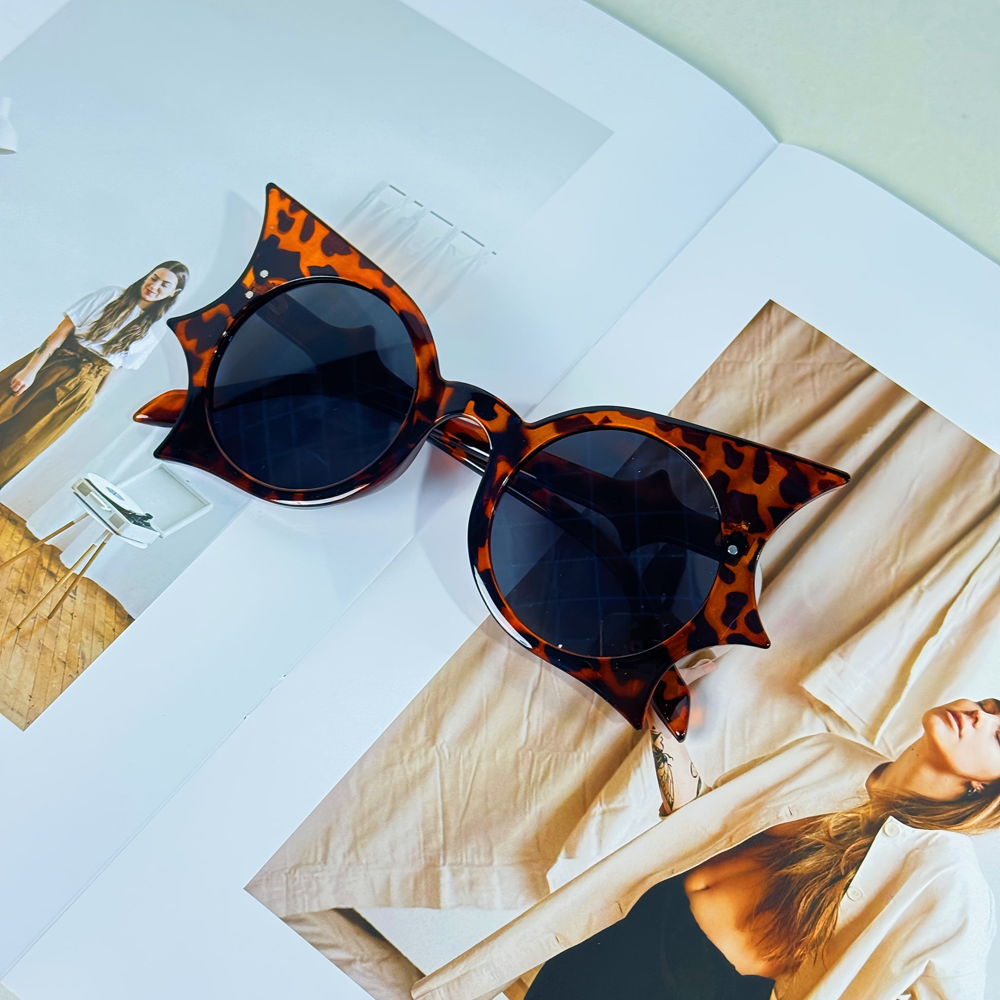 Y2K Vampire Bat-Shaped Fashion Glasses - Gothic Leopard Print & Solid Black Frames for Halloween, Costume Parties, Teens Fashion Accessories, Party Eyewear, Playful Eyewear, Bold Statement Pieces